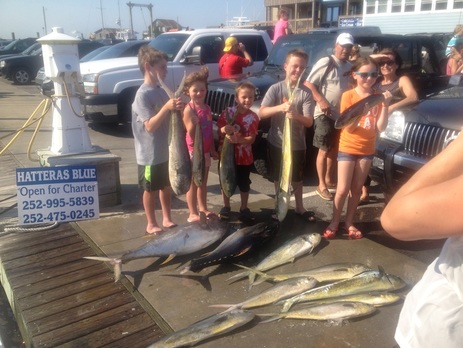 The Hatteras Blue is docked at Hatteras Harbor Marina in Hatteras, NC. The crew on the Hatteras Blue will always work our hardest to make you have an enjoyable and rewarding day of fishing on the Gulf Stream.